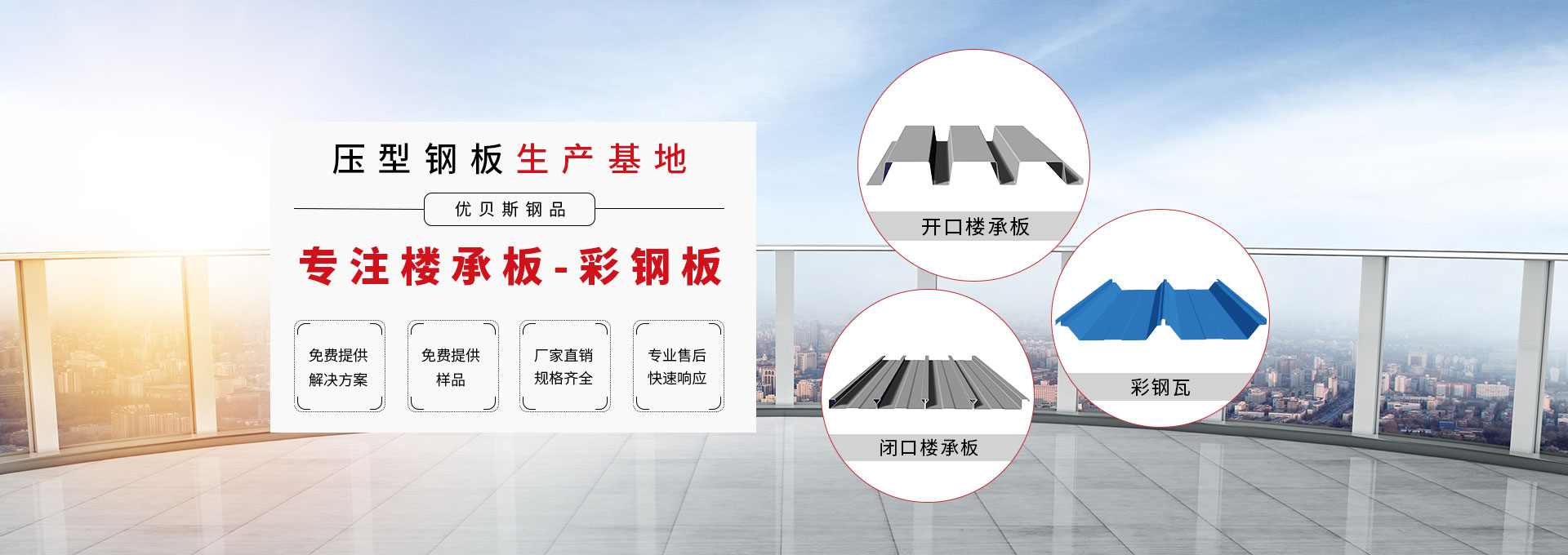 無(wú)錫優(yōu)貝斯鋼品有限公司主要生產(chǎn):樓承板,鋼承板,免澆筑樓承板,壓型鋼板,彩鋼板,閉口樓承板,開(kāi)口樓承板,縮口樓承板價(jià)格優(yōu)惠及相關(guān)的鋼結(jié)構(gòu)輔材。 優(yōu)貝斯始終追蹤并處于鋼結(jié)構(gòu)建筑及其圍護(hù)系統(tǒng)技術(shù)的發(fā)展前沿,預(yù)制金屬屋墻板面和樓承板系統(tǒng)。優(yōu)貝斯擁有的技術(shù)和豐富實(shí)踐一直為客戶(hù)提供質(zhì)量的產(chǎn)品、鋼建筑系統(tǒng)解決方案和貼心的服務(wù)。